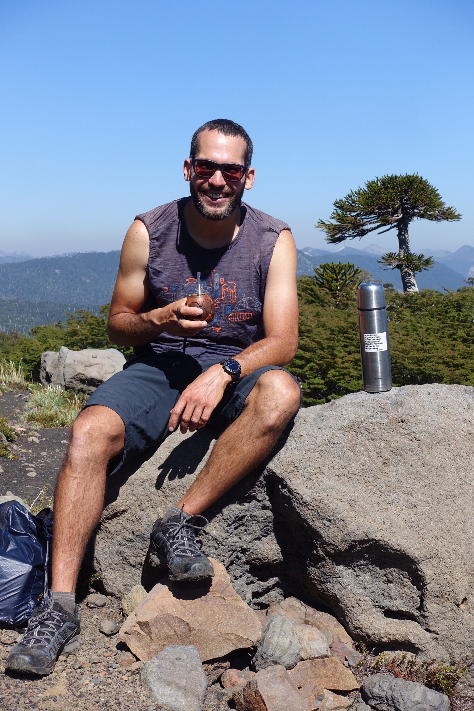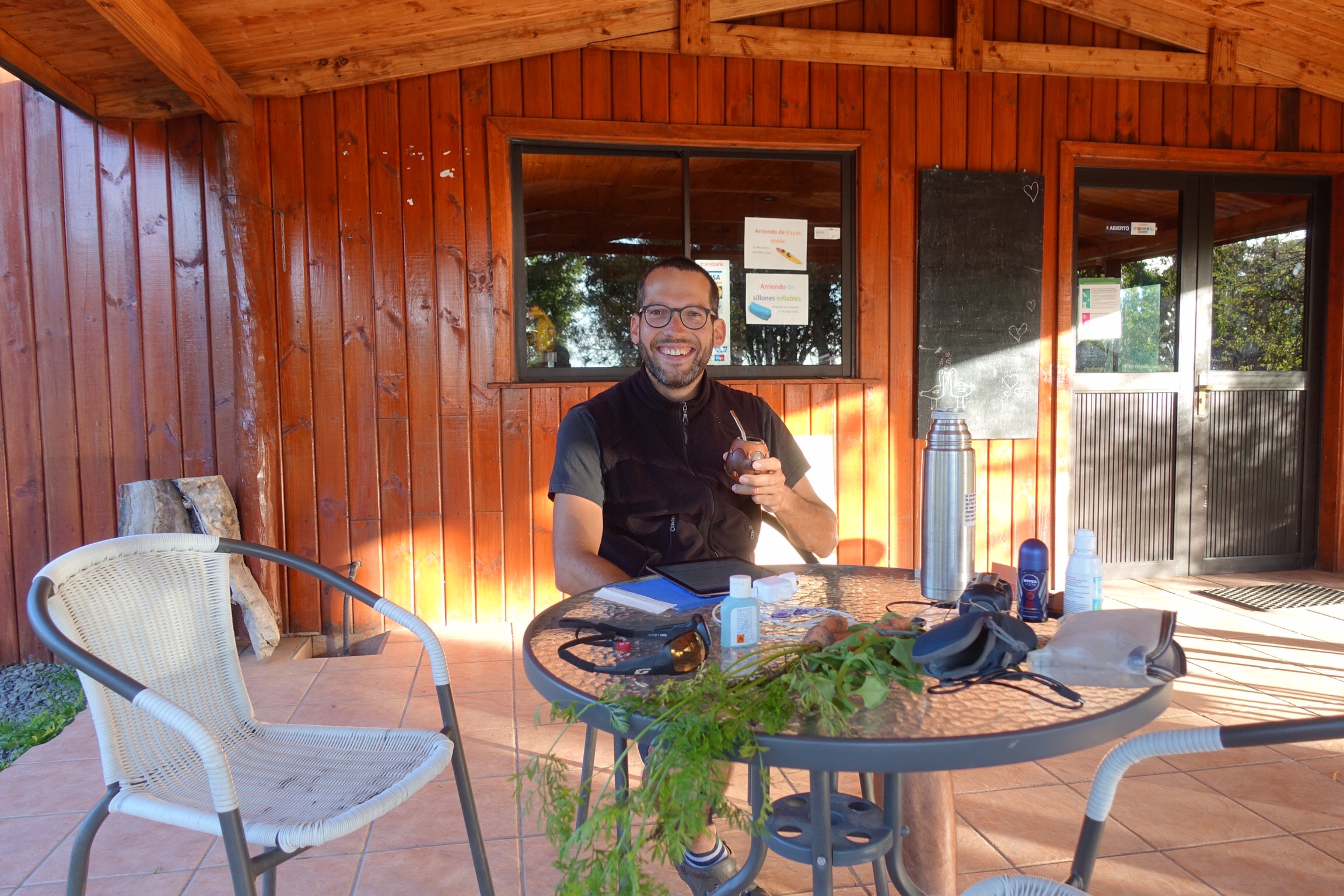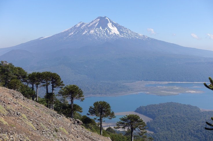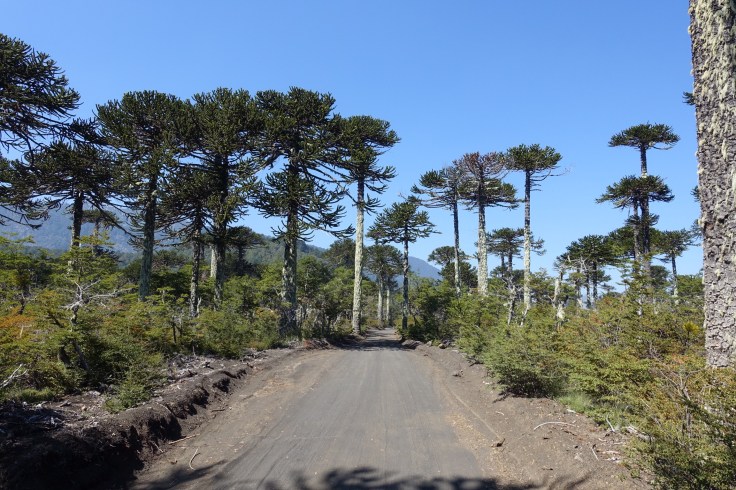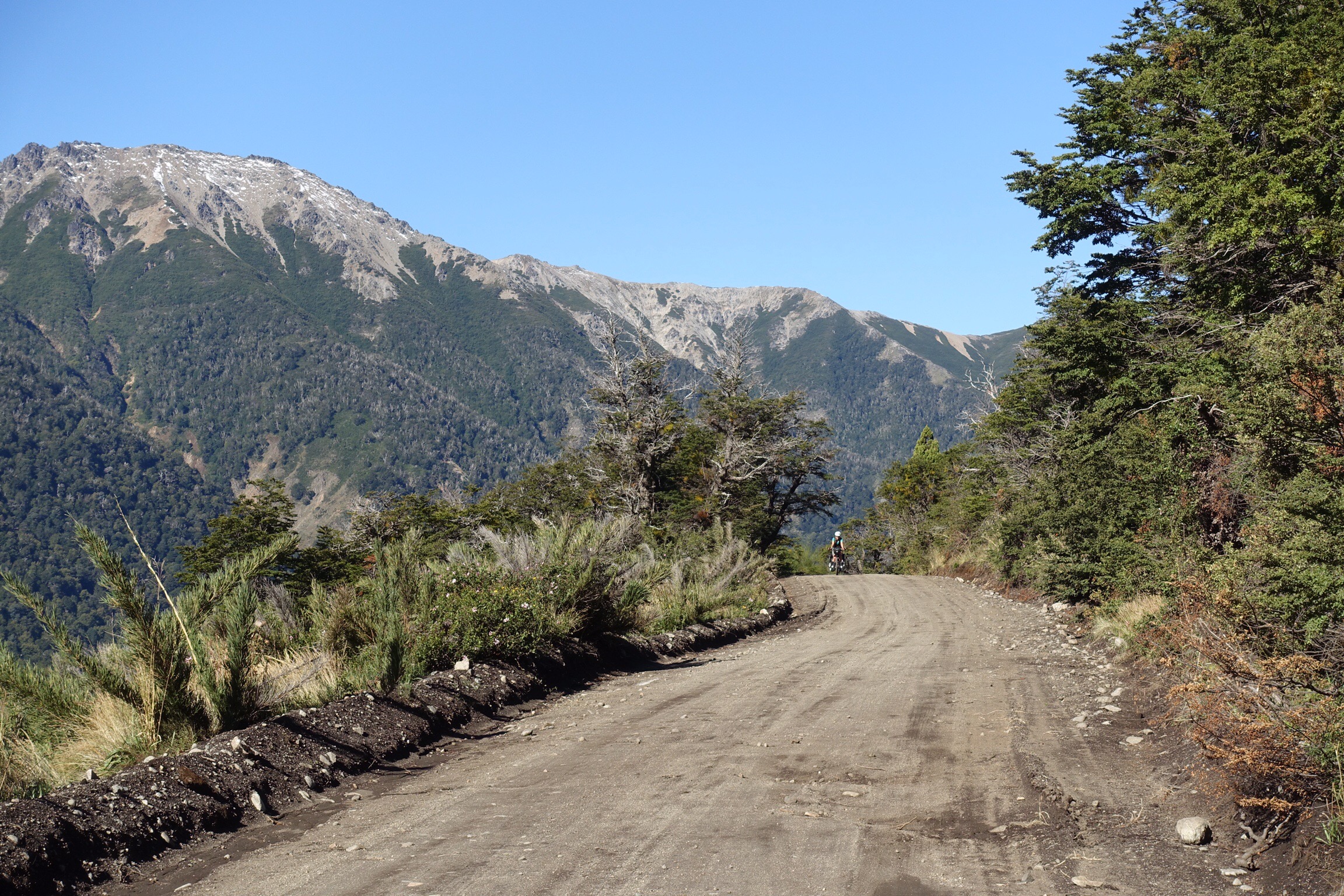 De San Martín, les possibilités pour retourner au Chili sont multiples et chacun d’entre nous voit les choses différemment… Ursula et Mathias penchent pour la variante avec ferry par le Paso Huahum (659 m), Marc aimerait se retrouver face à un dernier paysage de pampa avant de rentrer en Suisse et pousse encore un peu vers le Nord. Notre choix se porte sur le col de Carirriñe (1148 m), traversant le parc Lanín! Nous nous séparons donc avec l’impression que ce ne sera pas pour longtemps… La jolie route du parc, peu fréquentée, est idéale à faire à vélo. Avec le soleil, les lacs ont retrouvé leur couleur turquoise et nous traversons de fières forêts dans la bonne humeur!