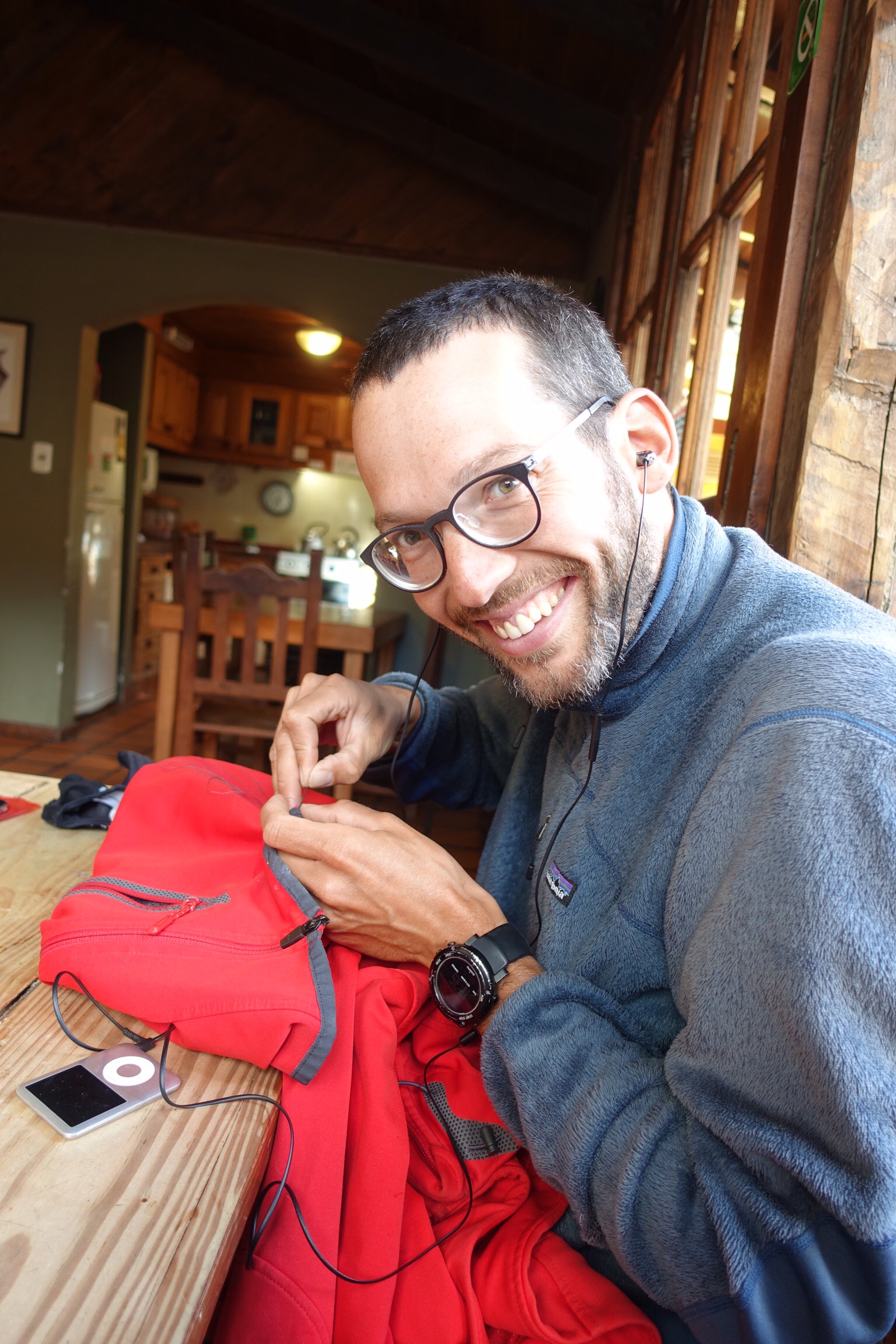 Arrivés à San Martín de los Andes sous des trombes d’eau, nous avons le plaisir de tomber sur Marc à l’office du tourisme, quelle bonne surprise! Nous avions passé Nouvel An à Cochrane avec ce sympathique gars de Winterthour, cyclotouristes comme nous! Aussi nous prenons une chambre ensemble dans une auberge du centre. Ursula et Mathias, nos amis suisses déjà retrouvés à El Chaltén, sont eux arrivés hier! La météo étant passée de maussade à exécrable ces deux derniers jours, nous nous installons confortablement à l’auberge et attendons deux jours de plus que la pluie veuille bien cesser, ne mettant le nez dehors uniquement pour faire des courses et goûter aux bons gâteaux du coin. Nous avons de toute façon assez de choses à faire pour nous occuper, entre les déclarations d’impôts à remplir, de la couture et autres calculs d’itinéraires… A cinq, nous passons aussi d’excellentes soirées à cuisiner et refaire le monde.