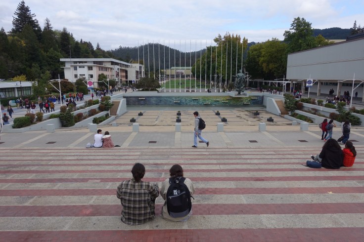 Après avoir longé le fleuve Biobío, nous arrivons enfin à destination, Concepción. Non sans mal, car la route était passablement chargée de camions. Nous nous installons dans un petit hôtel et profitons de l’ambiance chaleureuse et vivante de l’endroit. 2ème ville du pays, Concepción a l’énergie de ses étudiants, jeune et active. Nous prenons plaisir à observer les universitaires, prendre un café puis une bière dans cet endroit où il n’y a pas grand chose à faire sinon se laisser vivre. Le soir, nous retrouvons nos compatriotes dans un bar où se joue de la musique live. Deux groupes se succèdent sur une musique rock voire hard-rock pour notre plus grand plaisir. Cette ville nous aura fait le plus grand bien et nous repartons sous la pluie mais le corps chargé d’énergie pour notre prochaine étape: le slow-up du Pacifique!