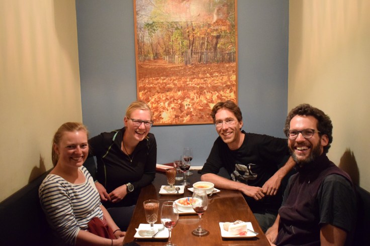 Il nous reste 3 jours à La Paz avant de reprendre la route en direction de Cusco: que faire? Une deuxième balade en montagne nous titille, mais nous avons encore si peu profité de la vie urbaine que nous décidons de rester à La Paz. Nous aurons encore l’occasion de profiter de l’air pur des montagnes et des campagnes au cours des prochains mois. Là, sonne alors la fin de notre aventure avec Robin et Ivette. Nous fêtons ça en grande pompe au Gustu, gastronomique très couru de la capitale, galamment invités par Robin. Les mets accompagnés de leur breuvage, les explications enflammées du maître d’hôtel danois, les discussions animées et les rires font de cette soirée un moment inoubliable.