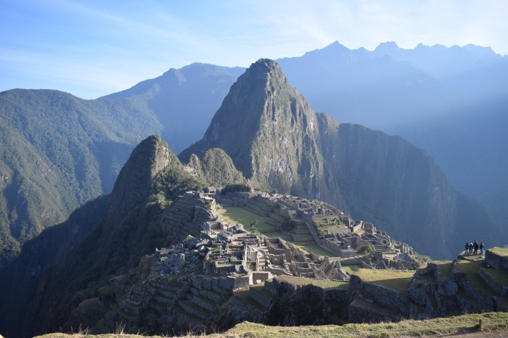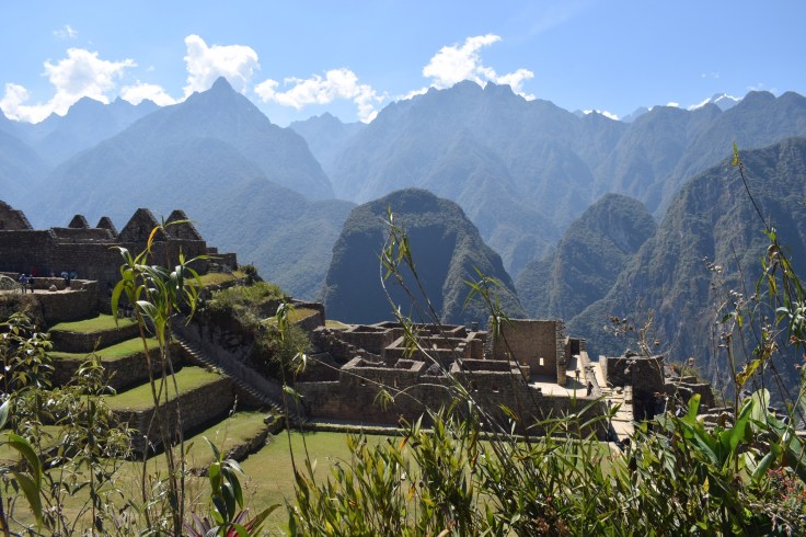La cité Machu Picchu comme sur les photos :-)! Le site est magique, son emplacement encore plus. Située dans un méandre du Rio Urubamba, au centre de deux sommets sacrés, le Huayna Picchu (montagne jeune) et le Machu Picchu (vieille montagne), la cité jouit d’une vue panoramique imprenable sur les sommets environnants.