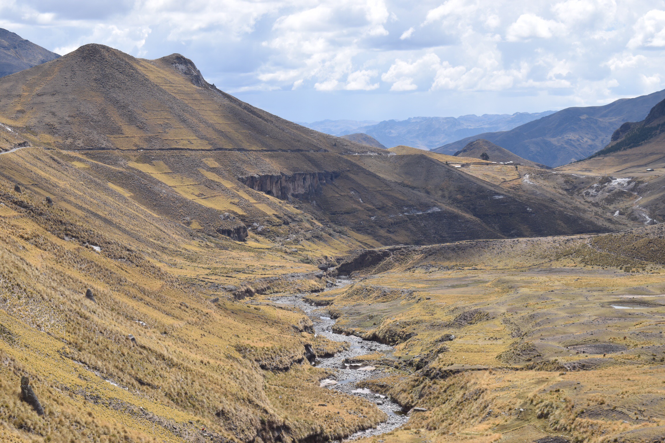 Tout au long de ces 800 kilomètres, la route n’en finit pas de monter et descendre, mais toujours tranquillement. Nous nous armons donc de patience, refaisons le monde, élaborons des plans sur la comète, écoutons de la musique, lorsque nous ne sommes pas simplement accompagnés par le bruit de l’eau qui clapote dans sa rigole. Après les nombreuses heures d’Altiplano, nous sommes sensibles aux odeurs des forêts, aux changements de végétation en fonction de l’altitude (entre 2000 et 4400 mètres). Les oiseaux aussi sont différents et leur apparition signifie parfois que le col est proche.