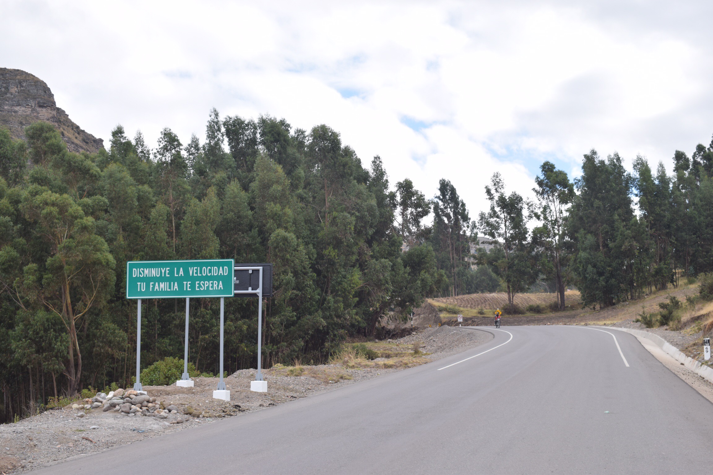 Les péruviens ne sont pas les plus prudents sur la route. Aussi nous croisons souvent ce genre de panneau sur la route: « ralentis, ta famille t’attend »