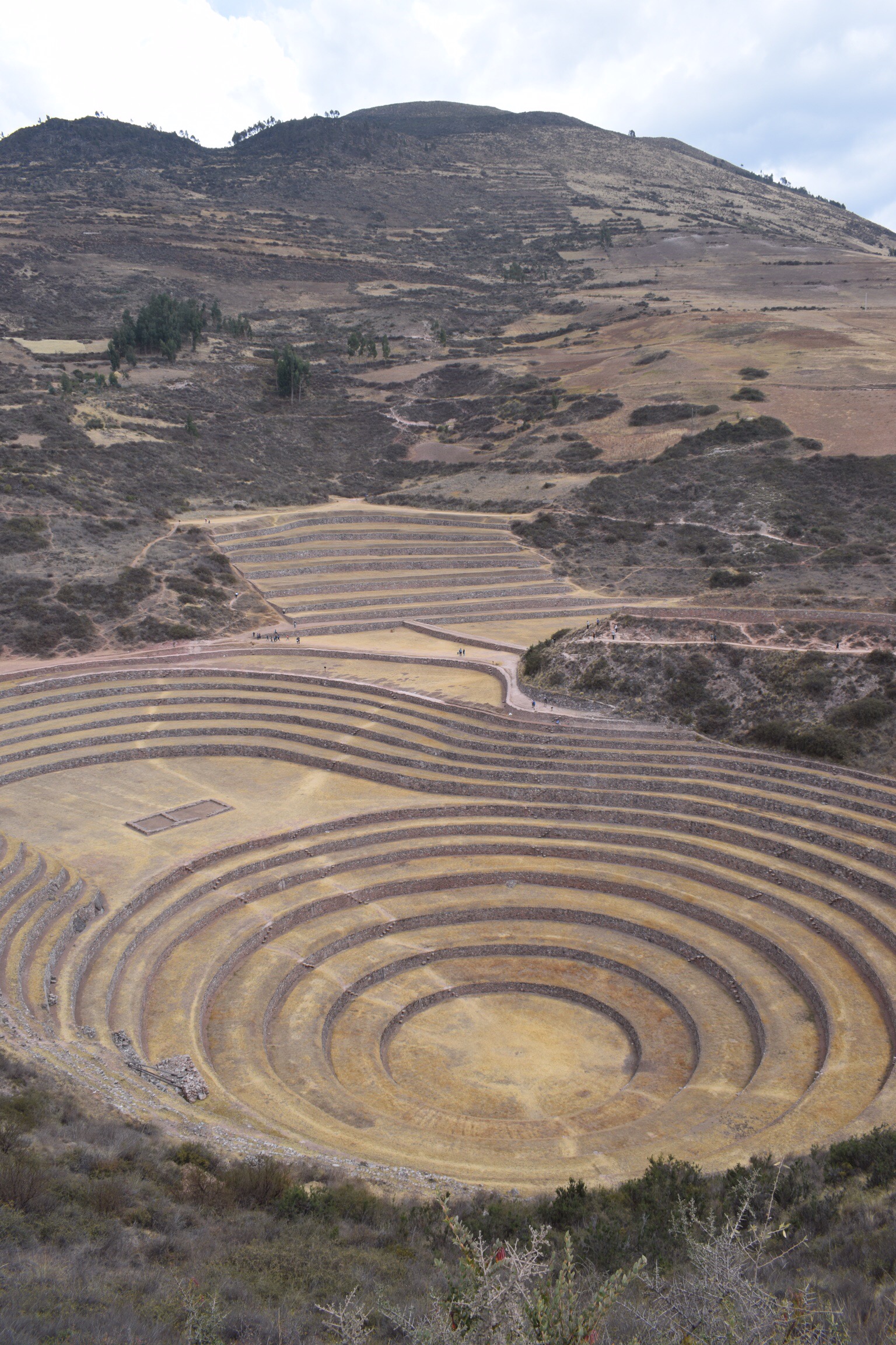 Moray ou l’ingéniosité agricole inca. Selon les archéologues, ces terrasses étaient utilisées comme un laboratoire. On aurait fait ici des essais sur les rendements des cultures en fonction de la température ou habitué progressivement certaines espèces à vivre à des altitudes plus élevées que naturellement. En effet, la température varie de 0.5 degré par terrasse pour une différence totale de 15 degrés entre la plus basse et la plus élevée.