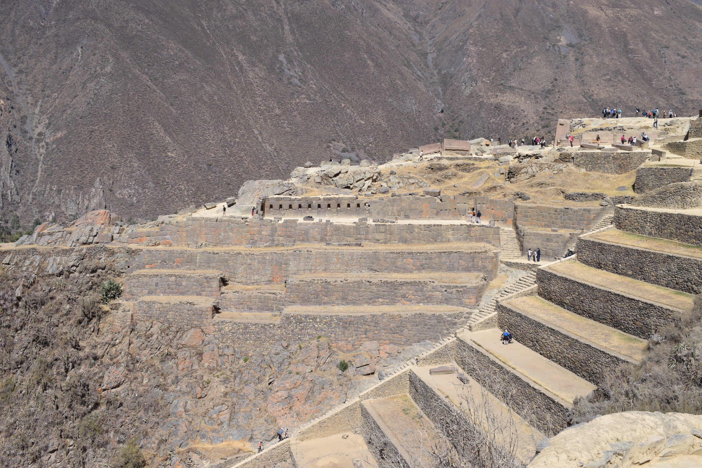À Ollantaytambo, nous passons notre matinée dans la forteresse inca jouxtant le village. Cet édifice inachevé, où l’on découvre remparts, terrasses, habitations et sanctuaires soulève plusieurs questionnements quant à sa construction. Comment ont-ils pu transporter les blocs utiles à l’édification de la forteresse de la carrière située de l’autre côté de la rivière jusqu’au sommet de la colline de Tambo? Vraisemblablement par un sytème de rampe, comme les Egyptiens avant eux.