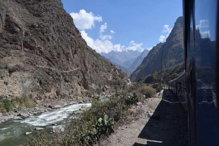 Le train qui nous emmène à Aguas Calientes le long de la rivière Urubamba.