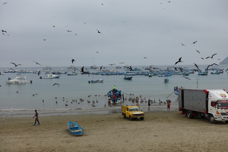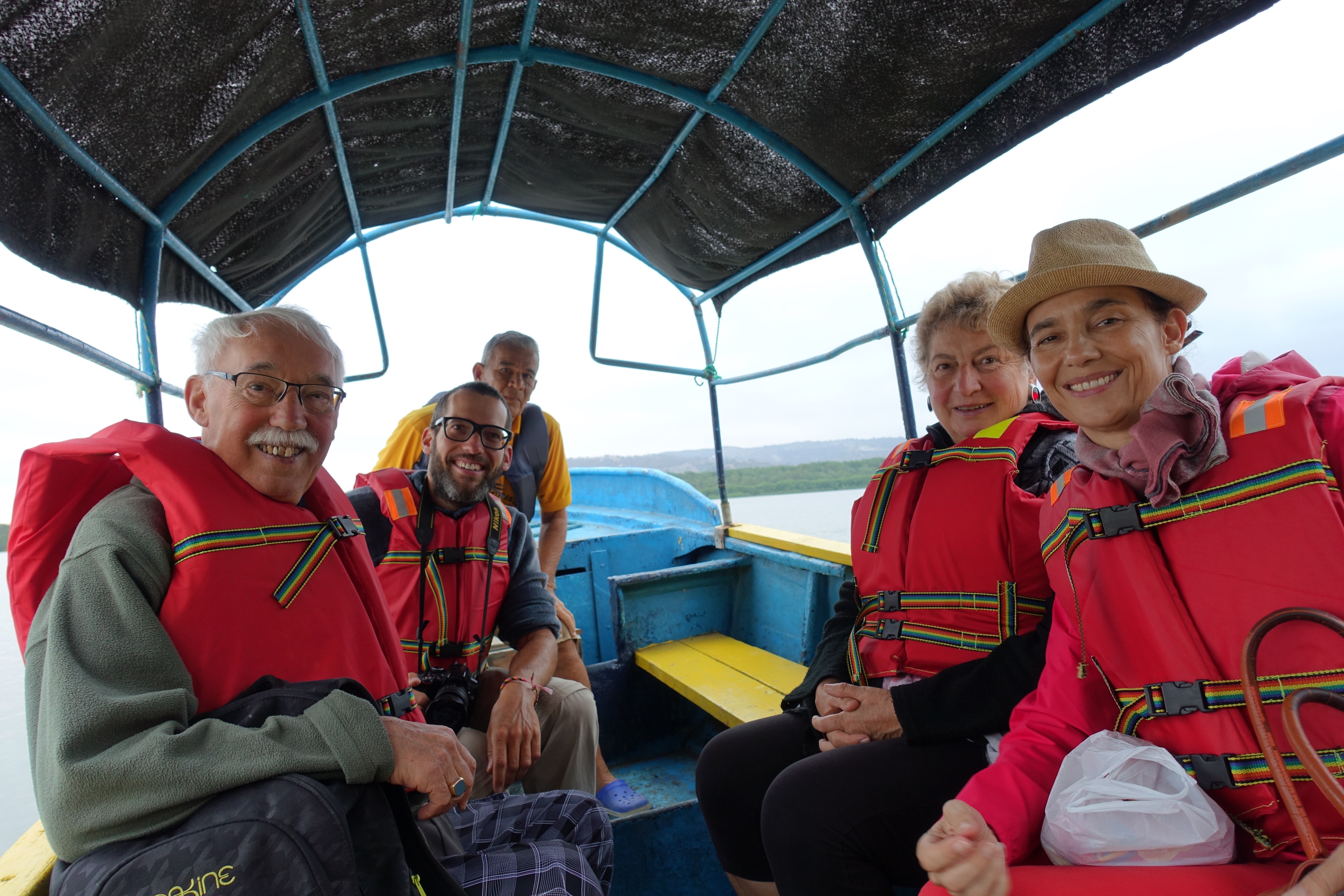 Nous longeons la côte, de près, de loin, avec des hauts et des bas; nous traversons des villages et de petites villes qui reflètent la douceur de vivre en Equateur, l’esprit d’entreprise et de débrouillardise de cette population axée sur la mise en valeur des ressources agricoles, mais aussi des curiosités de cette région luxuriante dans un grand respect de la nature. Quelques traces du tremblement de terre de 2016 sont encore visibles, mais des maisons neuves antisismiques sont intéressantes à observer pour des ingénieurs comme Sarah et Arthur.