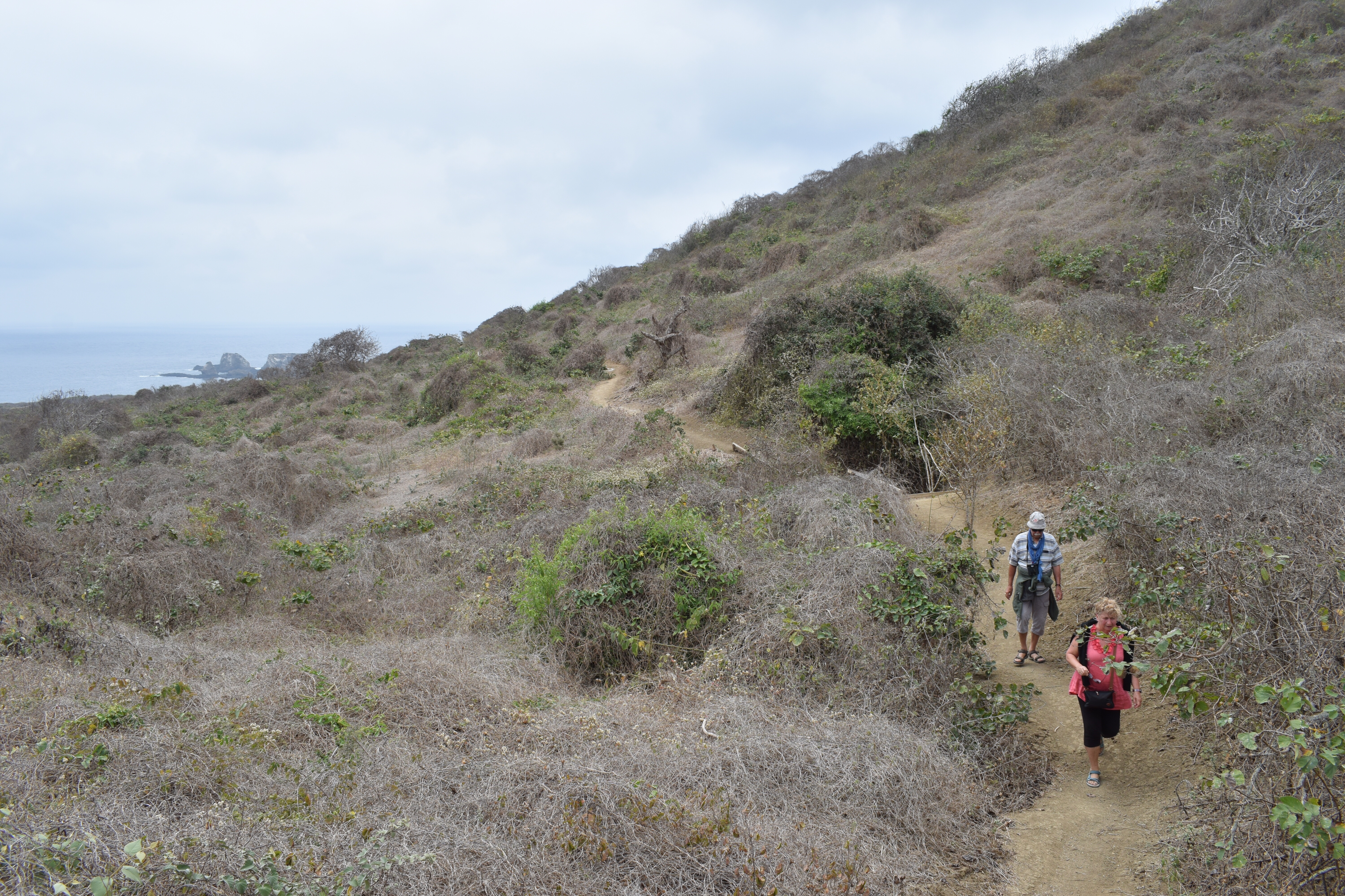 Enfin les journées de plage tant attendues sont possibles: promenade sur le sable, bain de soleil sous ciel voilé, encore plus dangereux pour la peau de Sarah, explorations diverses pour Corinne toujours à l’affût d’une découverte, natation et poursuite de crabes rouges sur sable blanc! Mais le point culminant est l’excursion sur l’île de la Plata découverte par les Espagnols au XVIe siècle, très brillante de loin, donc argentée, mais en réalité couverte du guano des oiseaux marins. Pour finir, on se jette à la mer avec masque et tuba pour observer de près les tortues, les raies et les bancs de poissons multicolores. Fascinant!