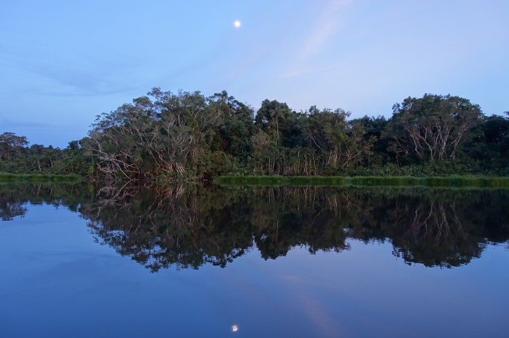 Au coucher du soleil, la forêt prend ses aises. Sur les eaux de la lagune Jatuncocha, elle gagne encore du terrain. La lune presque pleine ajoute un peu de mystère à cette nature fantastique et nous sommes définitivement envoûtés… Le rêve se termine au bout de deux jours lorsque nous retrouvons la quiétude de Nuevo Rocafuerte et le patron de l’hôtel Chimborazo, qui accepte de cuisiner les piranhas pêchés plus tôt dans l’après-midi.
