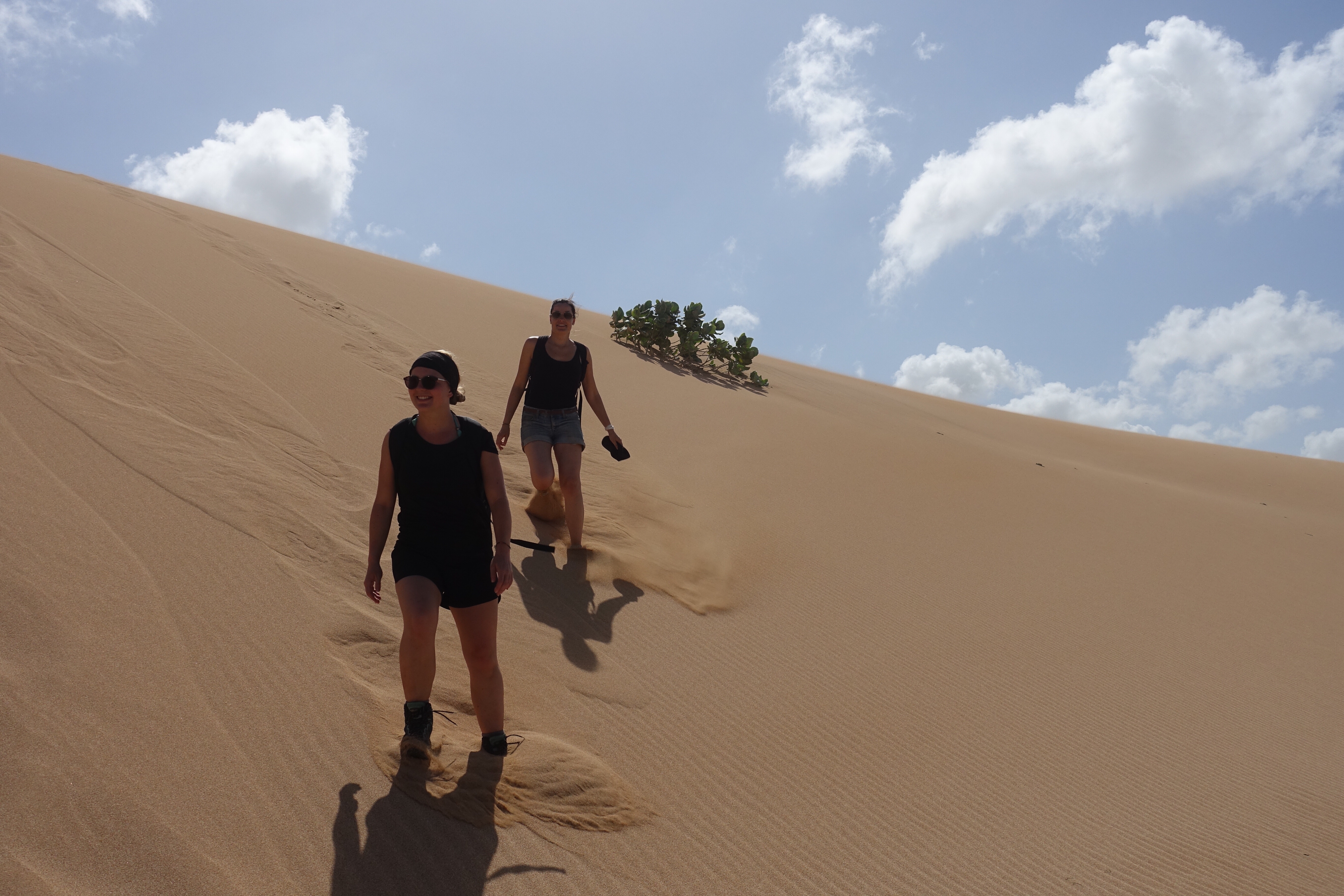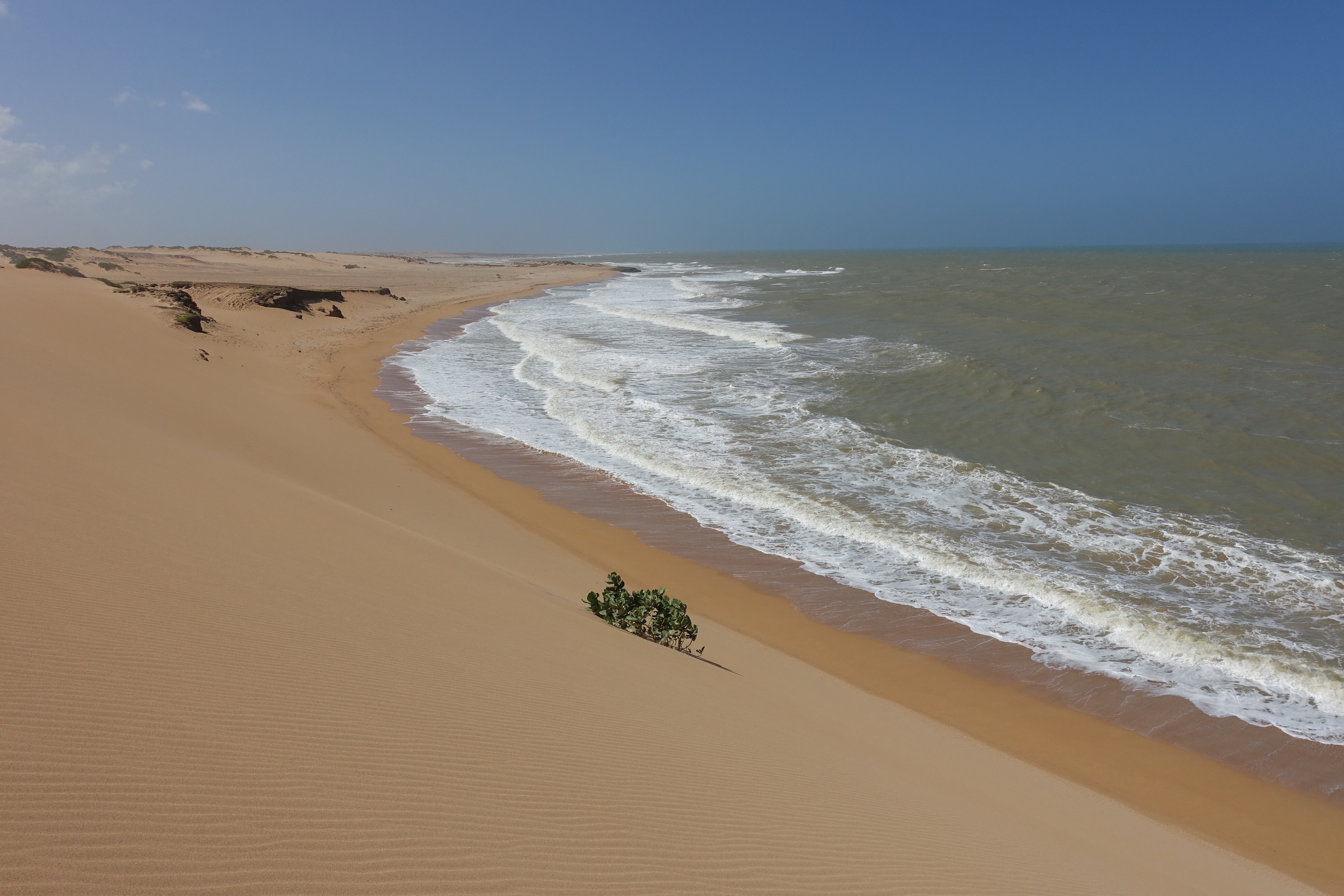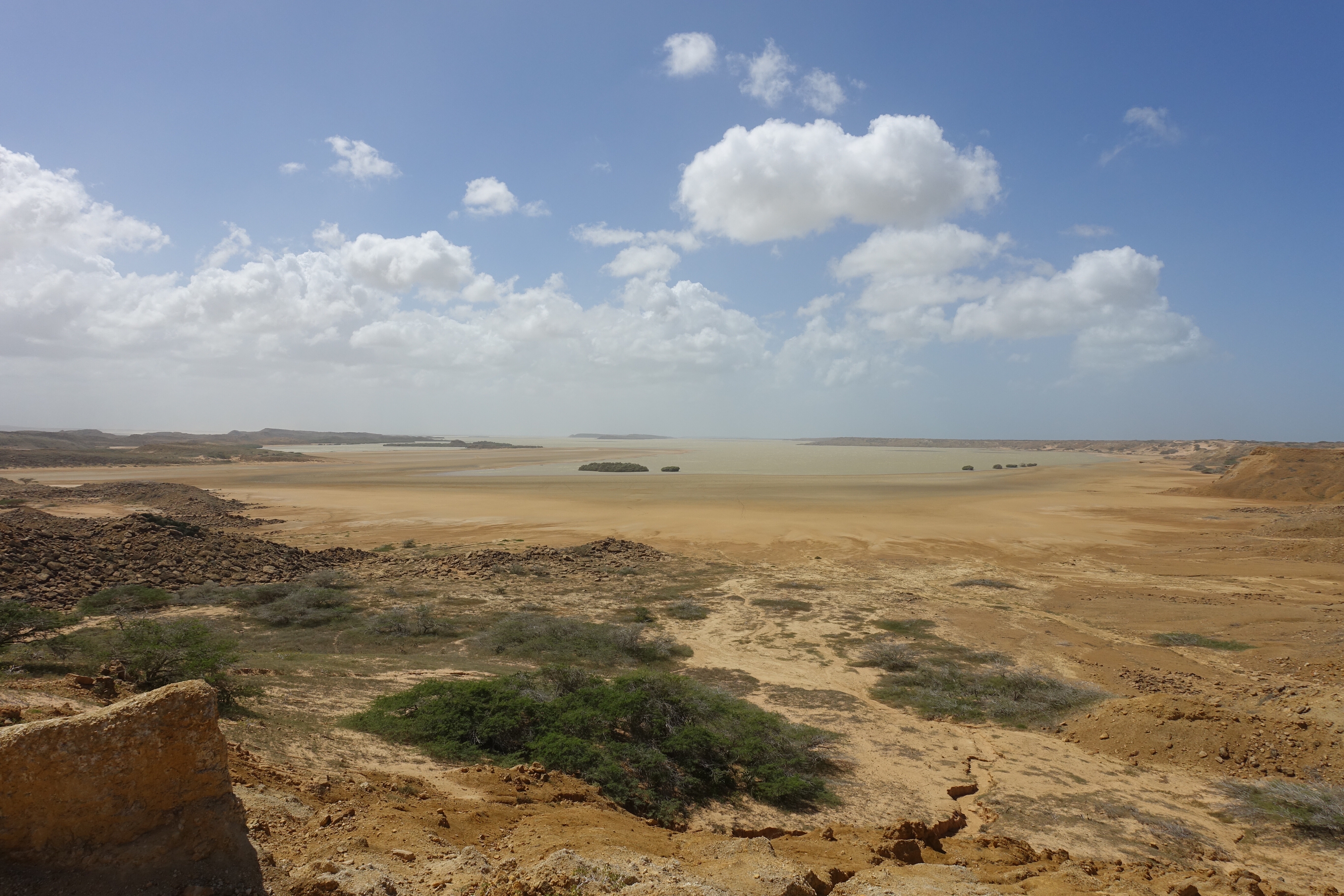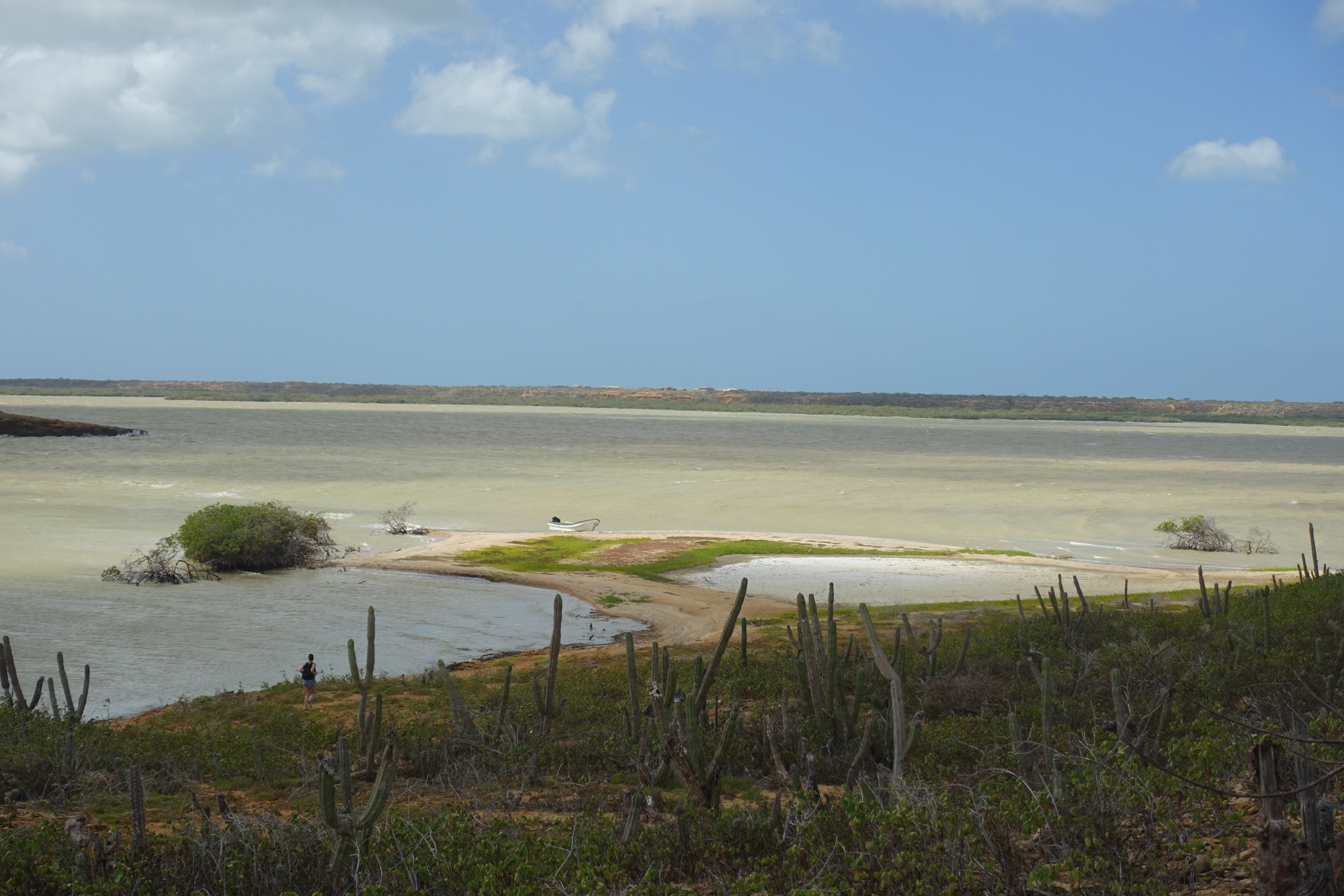 28 janvier: nous voilà listos pour atteindre notre dernier but: la Punta Gallinas, le point le plus au nord de la Colombie et de l’Amérique du Sud. C’est en jeep, à travers le désert que nous entamons le trajet de bonne heure après un petit tinto! Le soleil se lève durant le voyage et le paysage se dessine doucement derrière les branches d’arbres et les nombreux cactus. Puis une lancha nous attend pour nous amener là où nous logerons… ou… c’est plutôt nous qui l’attendons! Nous arrivons dans un environnement désertique où la nature est surprenante et très diversifiée. Le plateau, les dunes de Taora, les falaises rocheuses sortant de la mer ainsi que les racines de mangroves forment un tableau extraordinaire qui démontre la richesse et la variété des paysages que la Colombie recèle.