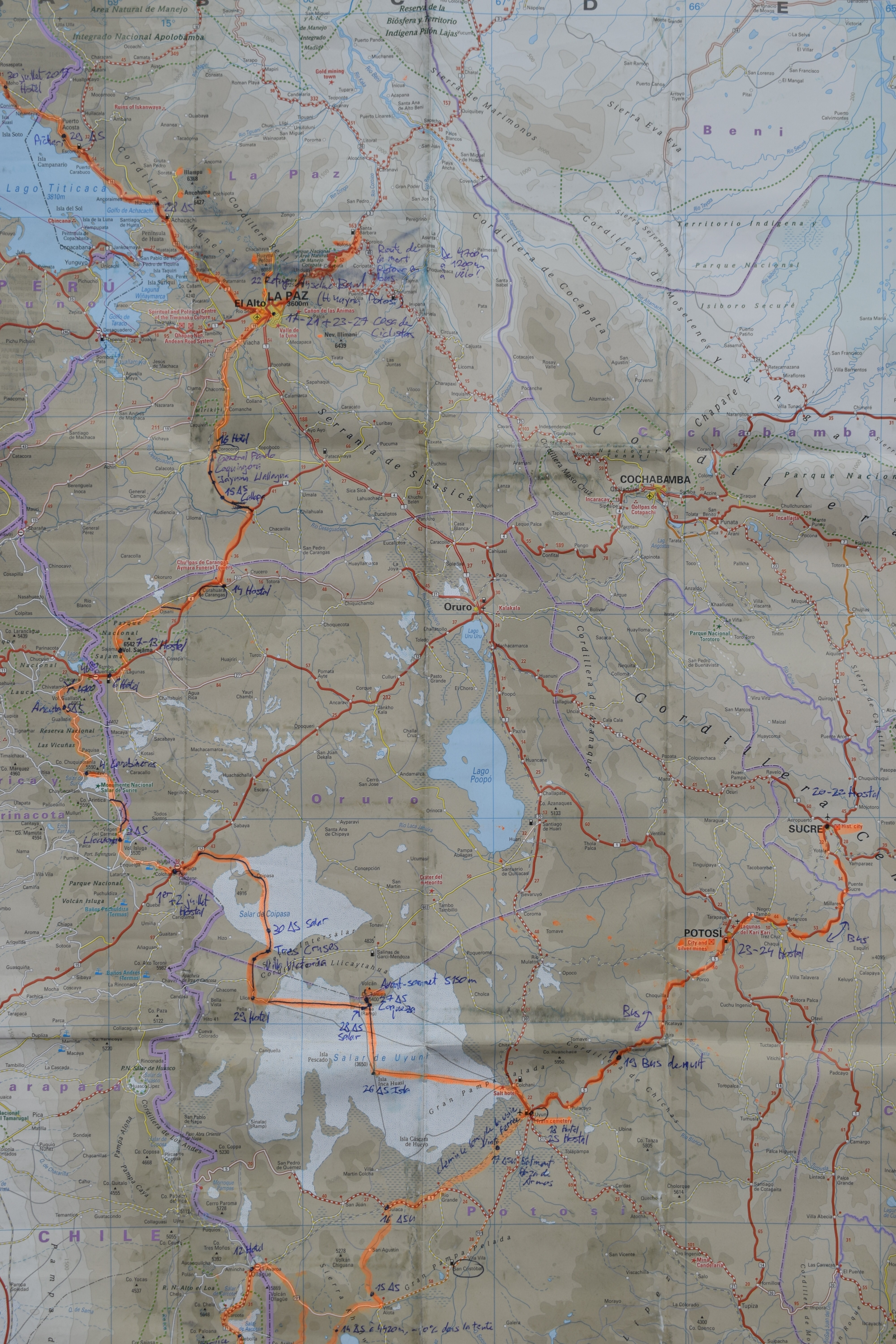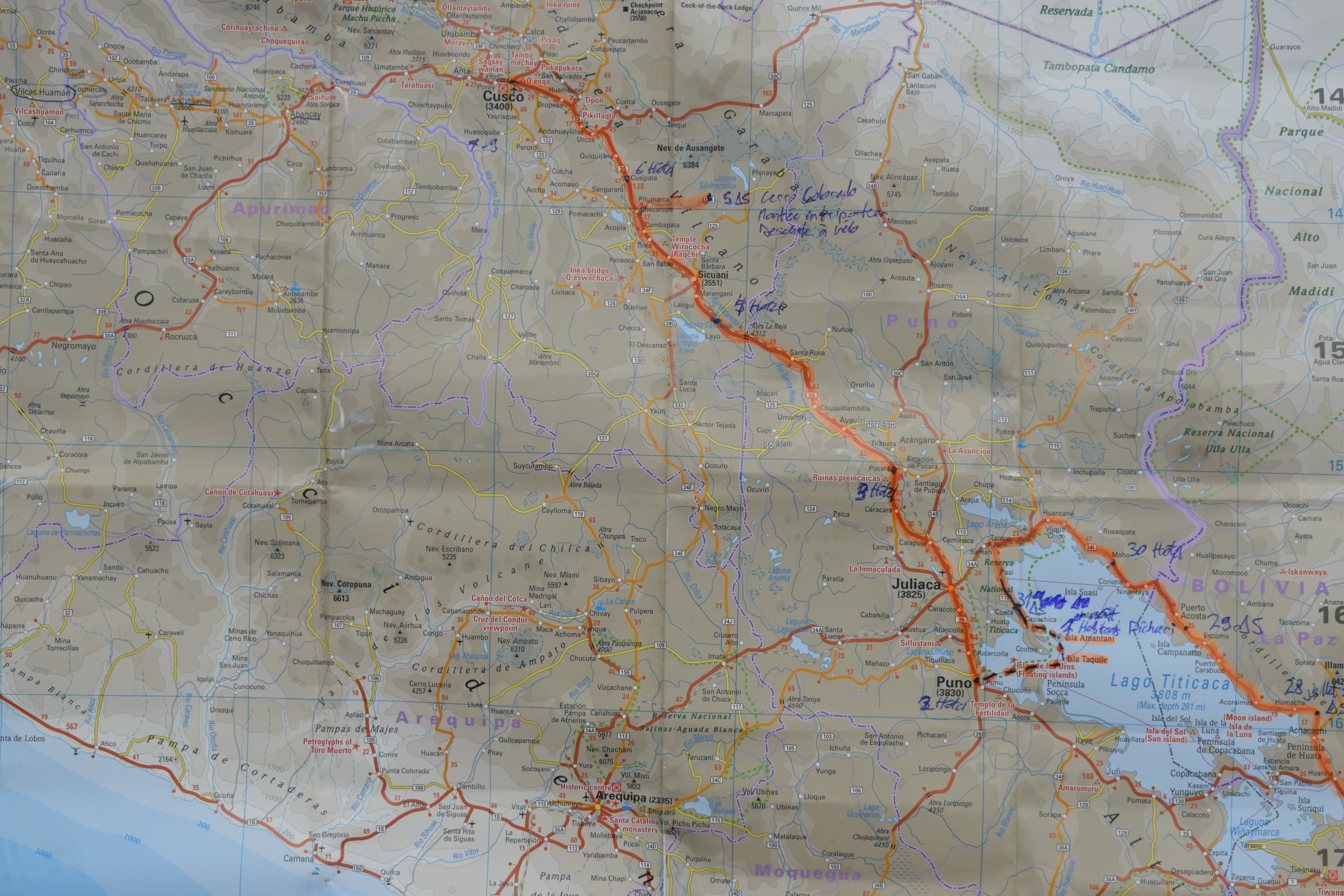 Bolivie – Pérou | La Paz – Cusco | 28 juillet – 7 août 2017 | 810 km en 10 jours de vélo (voir aussi carte précédente)