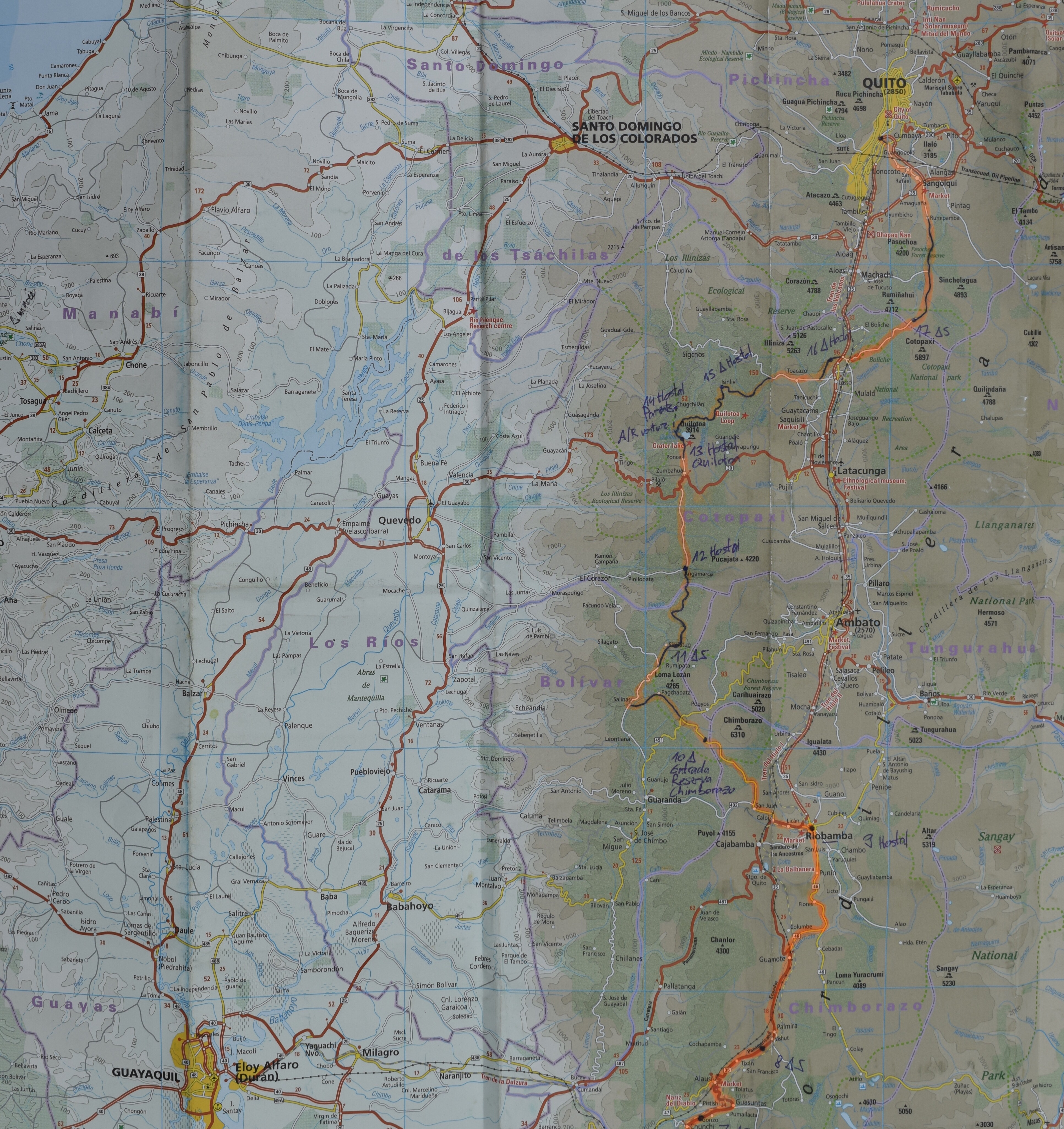 Equateur | La Balsa – Quito | 26 octobre – 18 novembre 2017 | 1045 km en 19 jours de vélo (à voir sur deux cartes)